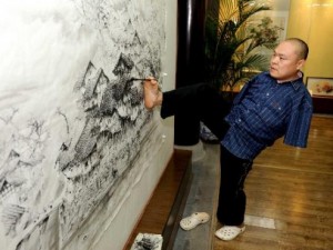 Il cinese Huang Gofu è senza mani dopo un incidente all'età di 4 anni e nonostante ciò dipinge capolavori.